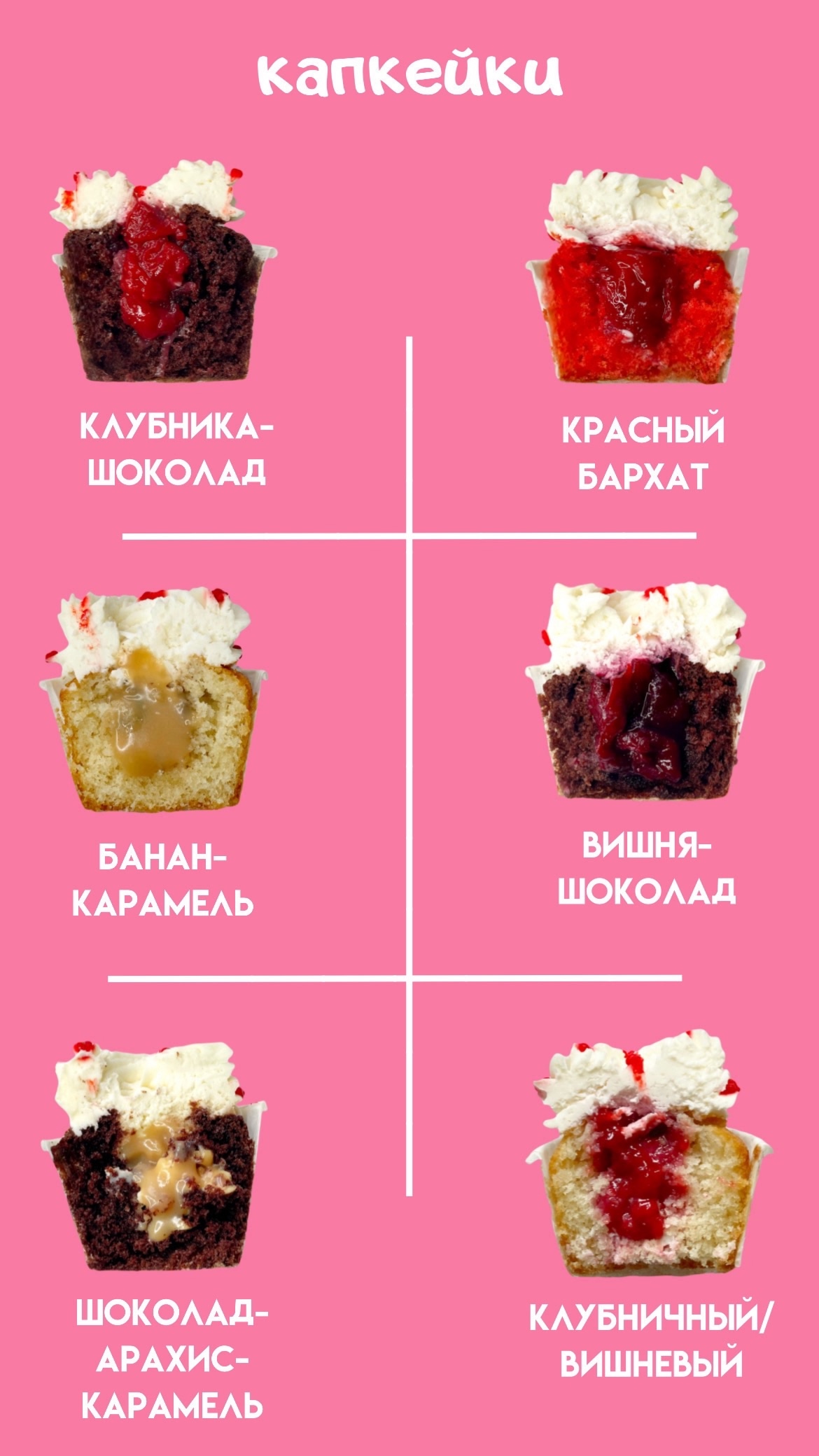 Можно выбрать несколько разных начинок. 1 начинка полагается минимум на 2 капкейка.